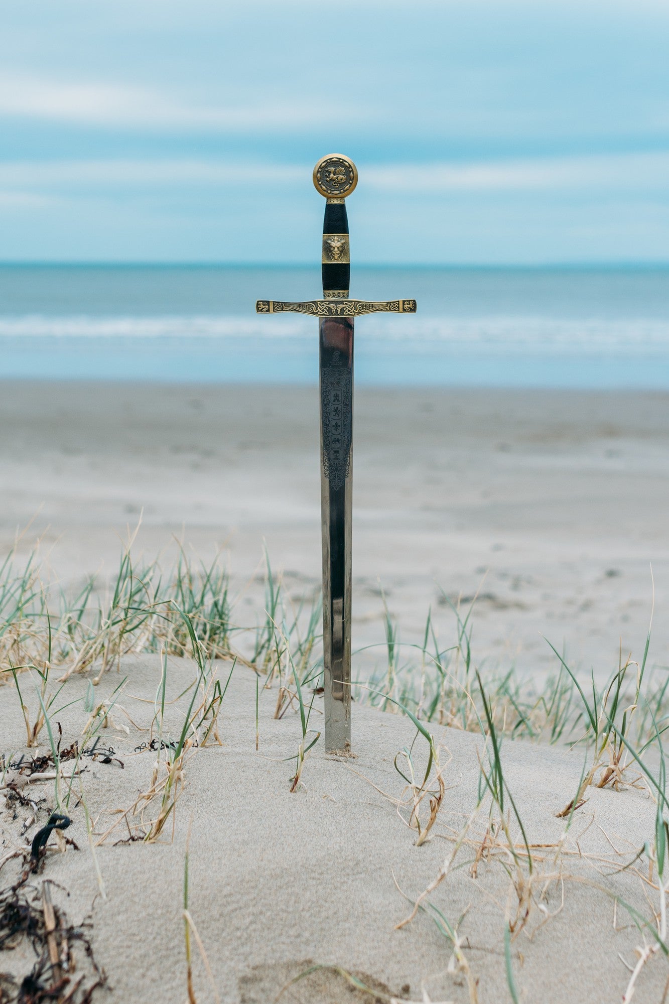 Sans doute l’épée mythique la plus connue. Tantôt tirée d’un rocher, tantôt remise par la Dame du Lac, Excalibur confère au roi Arthur son droit à régner et une puissance surnaturelle. Elle est associée au cycle arthurien et à l’idée de royauté sacrée.