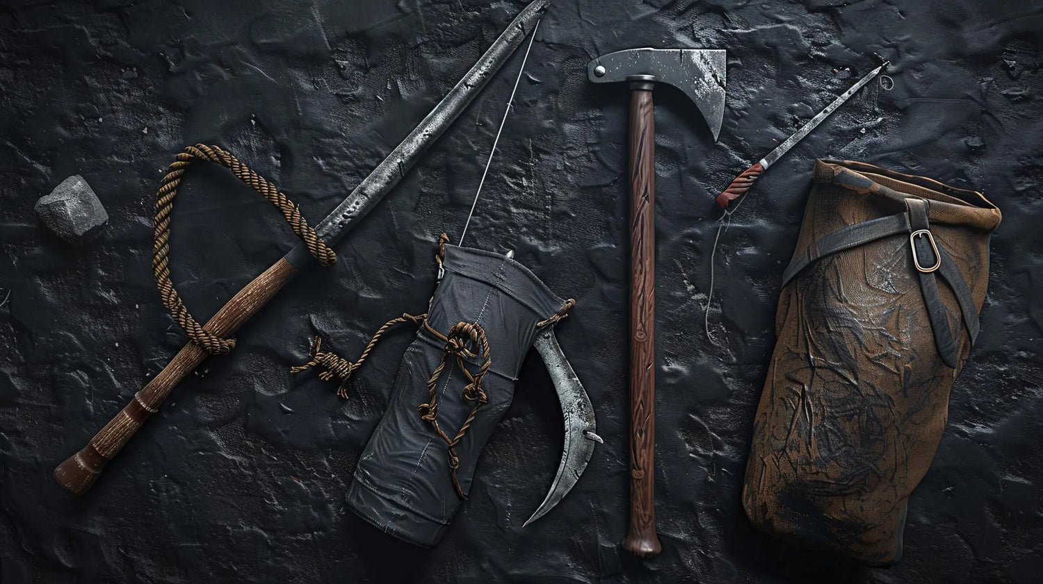 Arme de jet précise, utilisée en salves pour briser l’élan ennemi. Son équilibre est étudié pour tourner et frapper avec puissance.