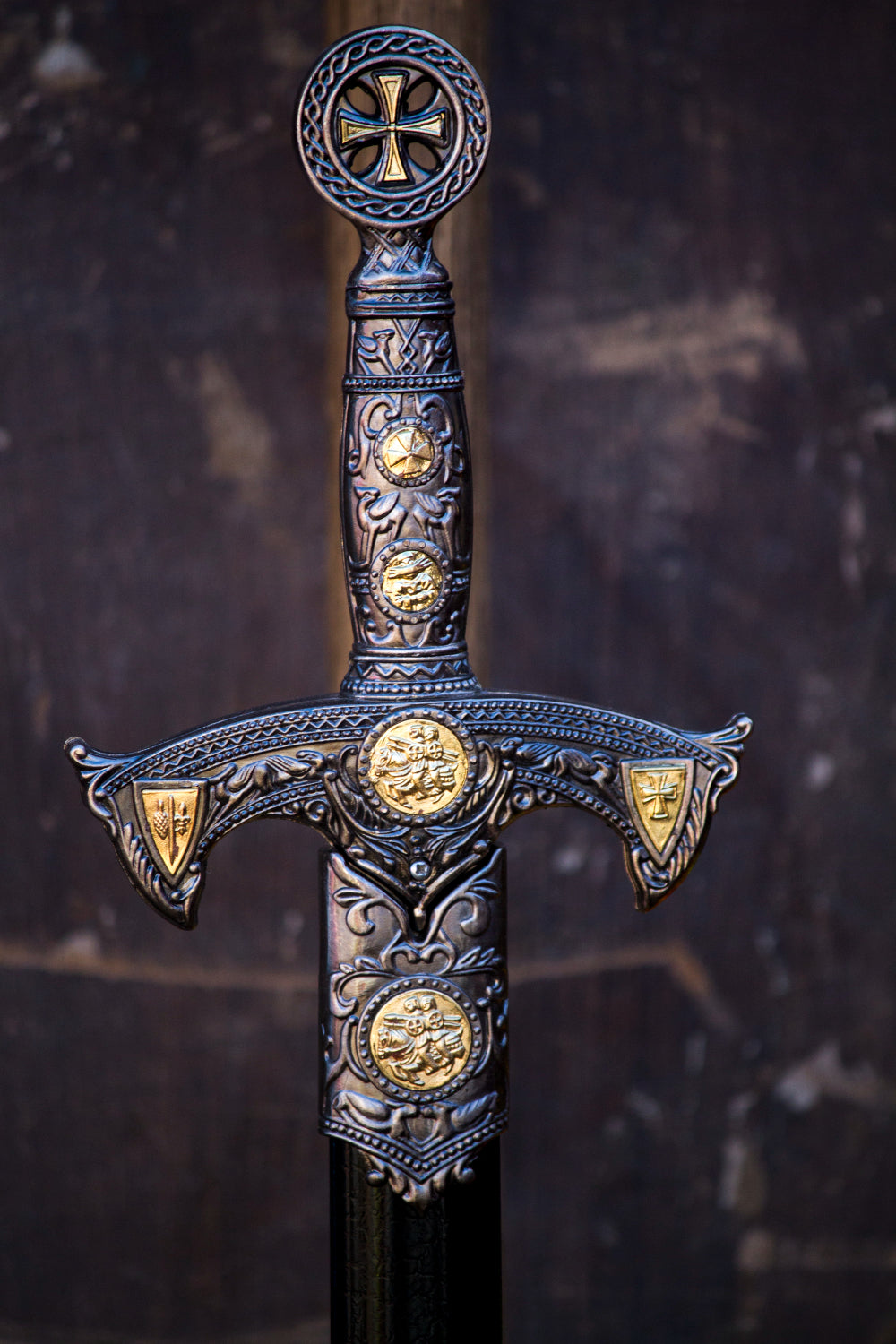 Conservée au Louvre et utilisée lors des sacres des rois de France, cette épée est à la fois relique historique et objet mythique. Elle relie la figure de Charlemagne à la royauté française. Nos artisans rendent hommage à ce chef-d’œuvre par des répliques inspirées de sa silhouette élégante.