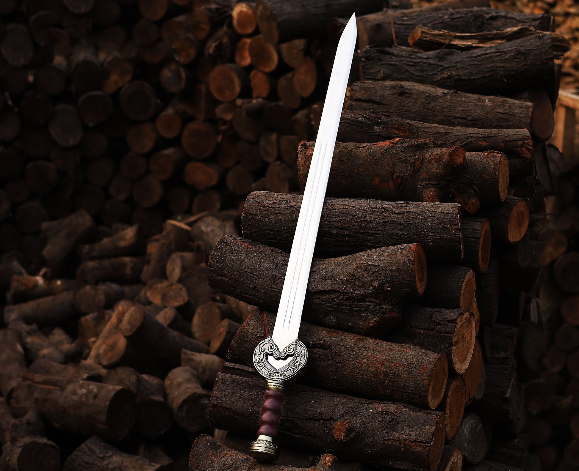 Symbole du courage et de la royauté du Rohan, l’épée Herugrim incarne la noblesse des lames forgées à la main selon les traditions médiévales. Cette réplique d’exception, inspirée du Seigneur des Anneaux, reprend fidèlement la silhouette de l’arme du roi Théoden : une lame droite en acier poli, fine et équilibrée, rehaussée d’une garde sculptée aux motifs nordiques et d’un pommeau ciselé rappelant les forges des citadelles anciennes. Chaque pièce est façonnée artisanalement, avec la même rigueur que les épées de chevaliers et de rois légendaires.